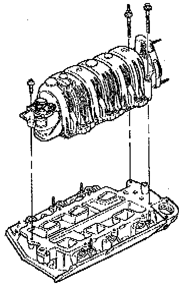 NOTE: The two bolts which fasten the lower intake manifold to the cylinder head are accessible only after the upper intake is removed. The bolts are located in the right front and left rear corners of the lower intake manifold. Remove the upper intake manifold to service the lower intake.