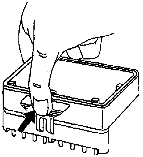 3. Carefully squeeze the latches on the Knock Sensor (KS) Module and carefully remove the KS Module. Apply pressure in the direction as shown.
