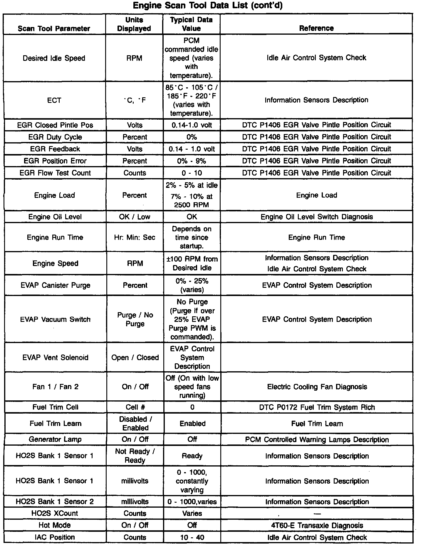 Scan Tool Data List