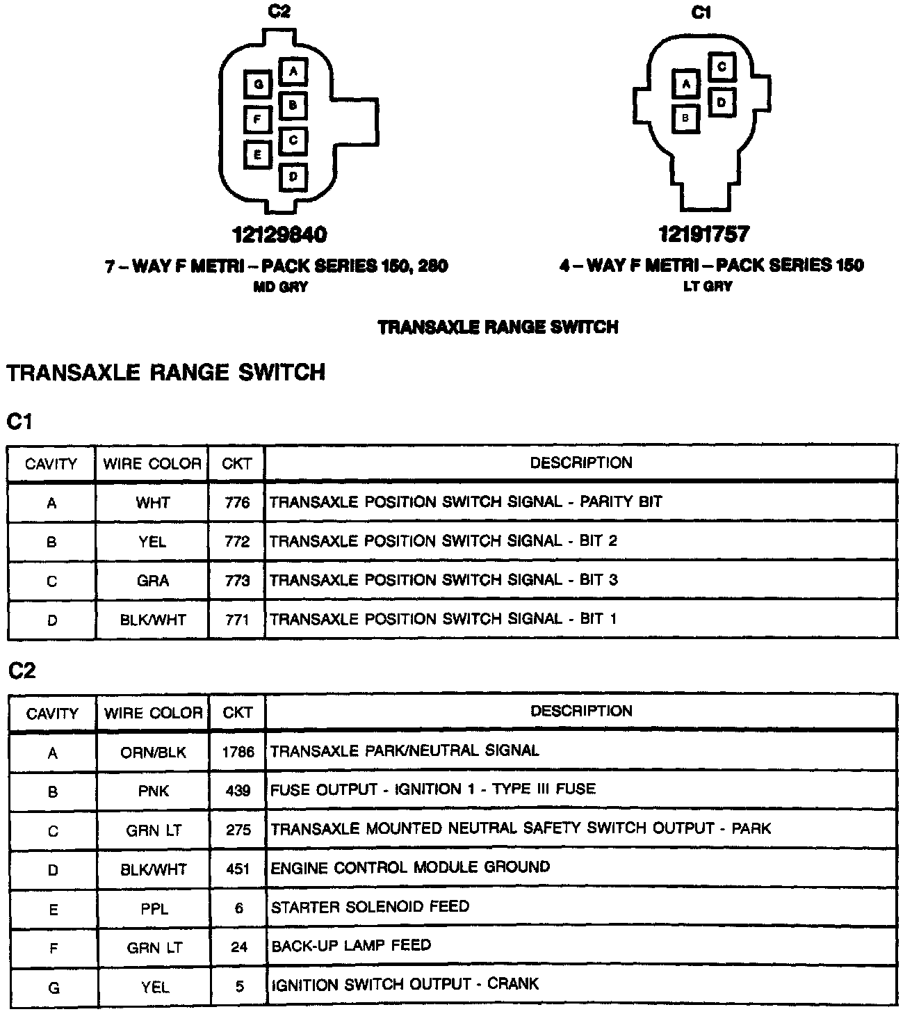 Transaxle Range Switch C1, C2: