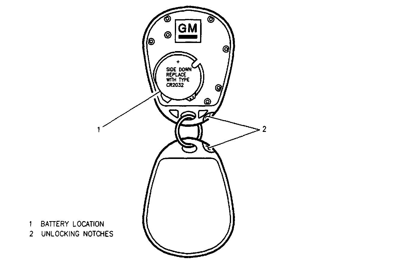 1. Insert bottom of GM door key into notch in bottom of transmitter and turn.