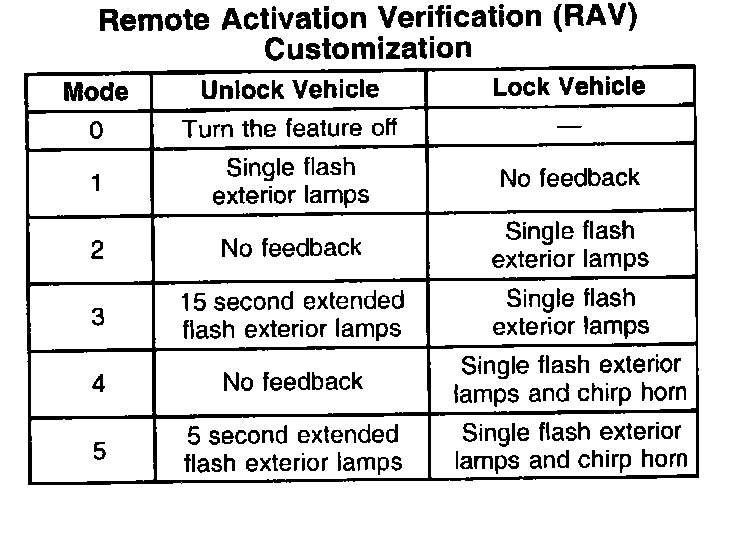 The remote activation verification (RAV) provides feedback to the driver that the vehicle has received as the command from the transmitter.