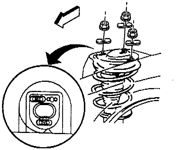 8. Move the top of the strut forward or rearward in order to adjust the caster. A 1 mm (0.040 inch) position change at the tower is about equal to a 0.1 degree change in the caster. Refer to Wheel Alignment Specifications.