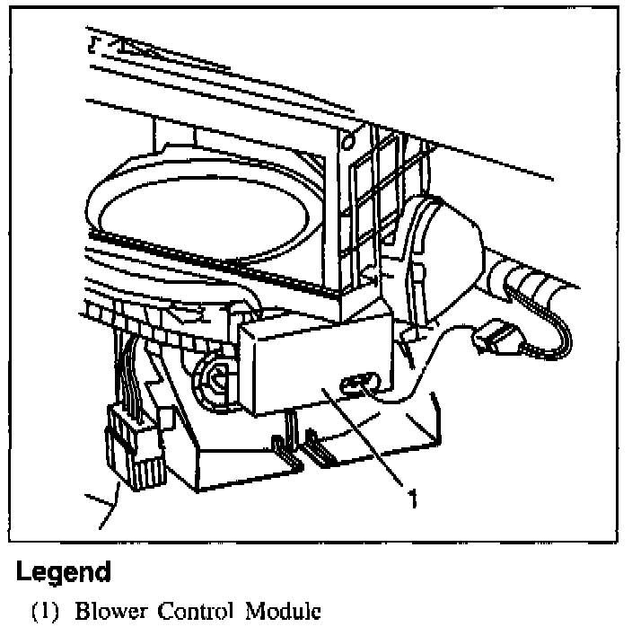 The blower is located in the passenger compartment near the right side of the HVAC module.