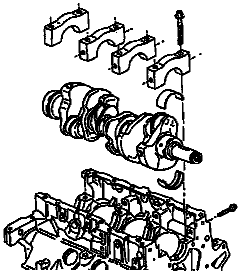 - Tighten the crankshaft main bearing cap bolts in equal increments. Do not completely tighten one bolt at a time to prevent the cap from being cocked.