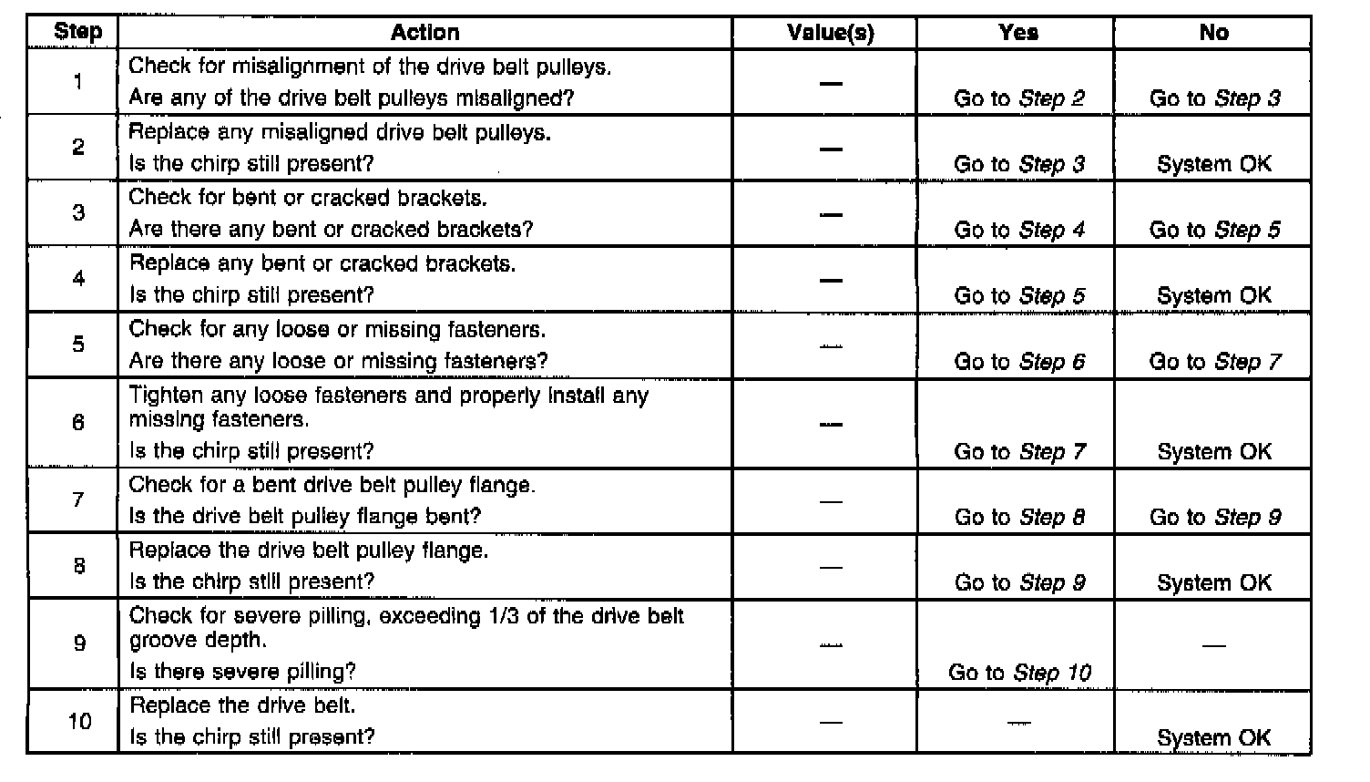 ^ Verify this condition by squirting water onto the drive belt. The noise will momentarily stop.