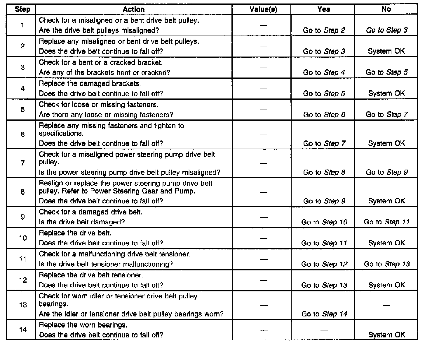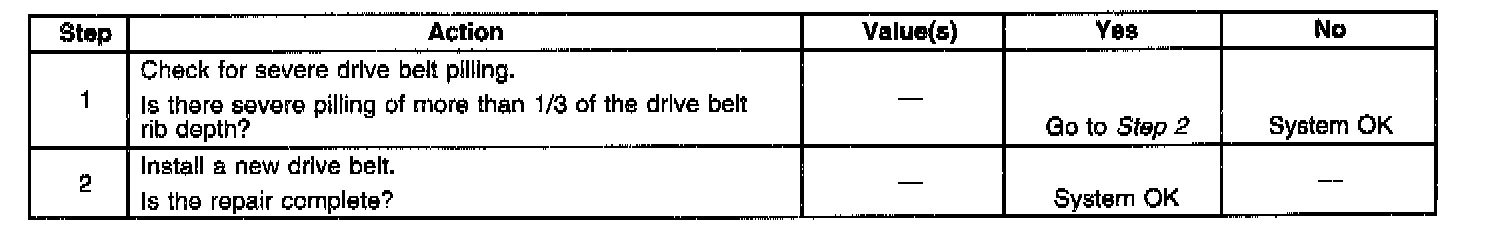 The thump or knocking noise easily misdiagnoses as an engine noise. In order to diagnose drive belt pilling, adhere to the following procedure: