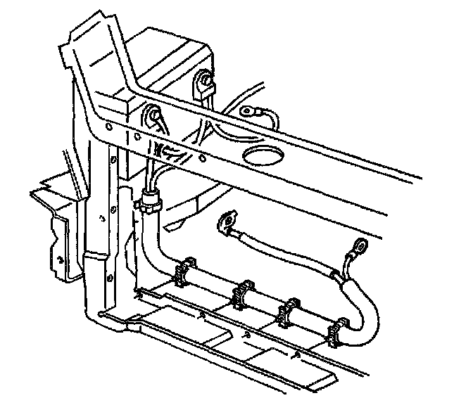 4. Connect the battery ground (negative) cable and the battery negative cable screw to the frame rail near the underhood accessory wiring junction block.