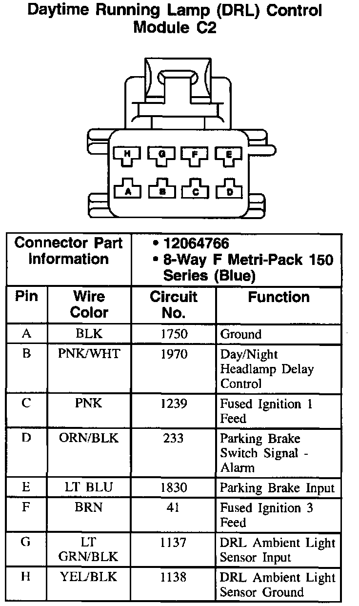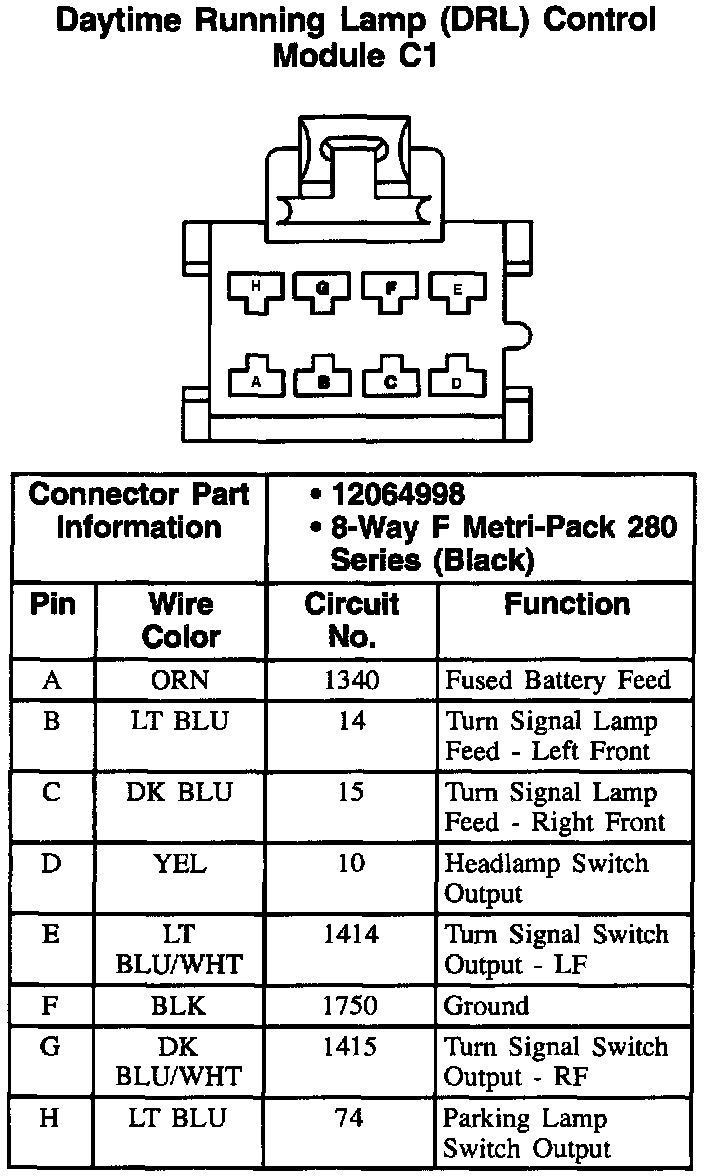 Daytime Running Lamp (DRL) Control Module: C1: