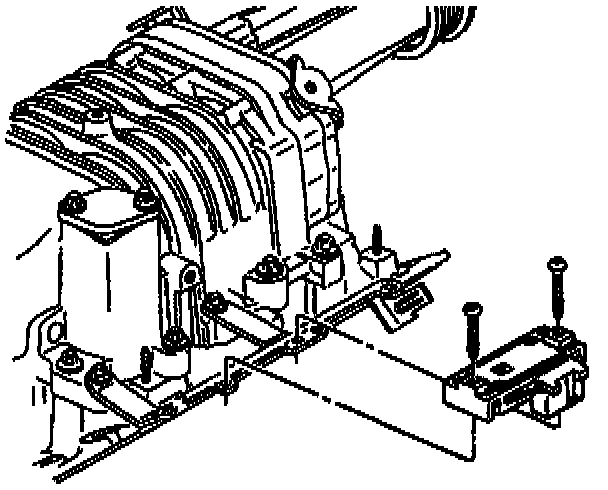 2. Carefully bend the locking tabs holding the MAP (1) sensor to the PCV valve cover (2) just enough to remove the MAP sensor.