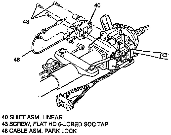 2. Park lock cable assembly (48) from lock module assembly 415).