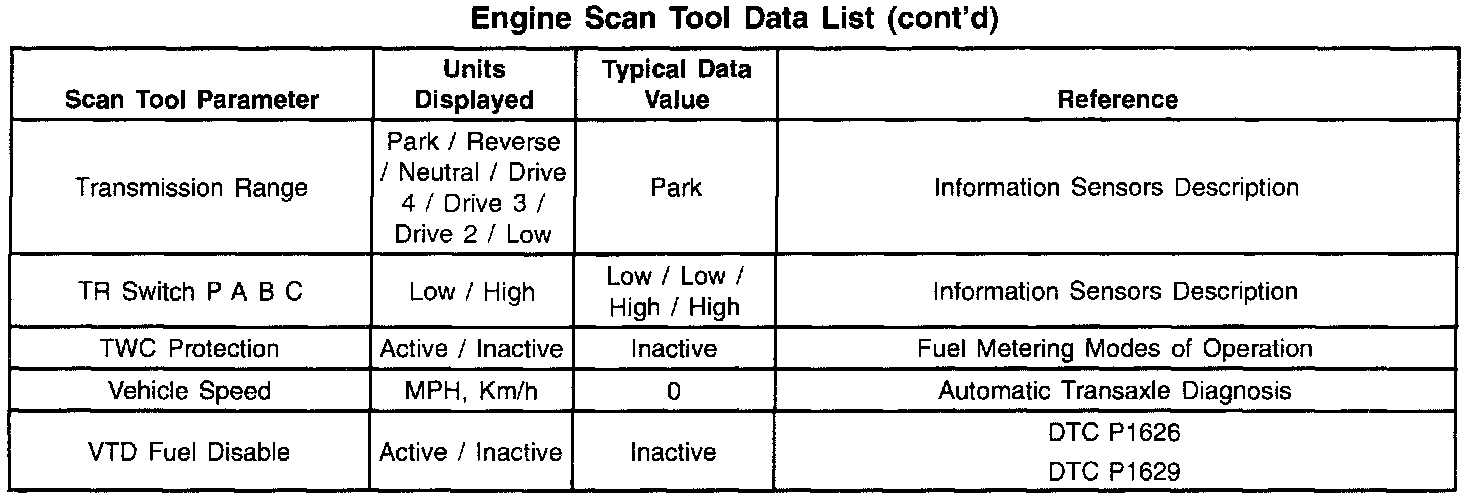 Use only the parameters listed in the tables for diagnosis. If a scan tool reads other parameters, the values are not recommended by General Motors for use in diagnosis.