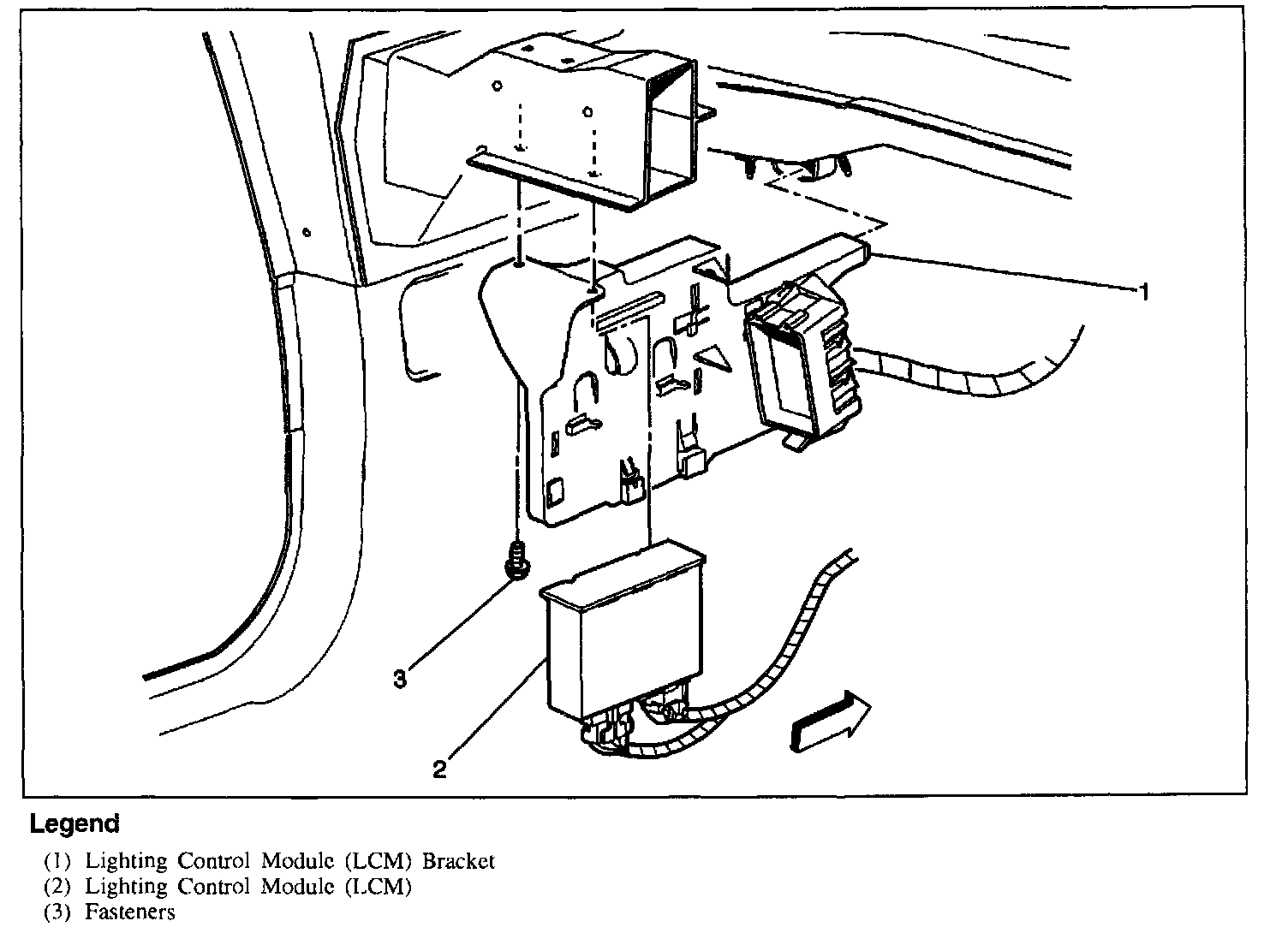 ^ Slide module toward rear of vehicle until mounting rails align and locking tab engages.