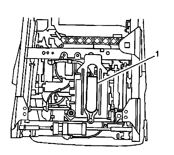 8. Remove the memory seat module (1) and the bracket.