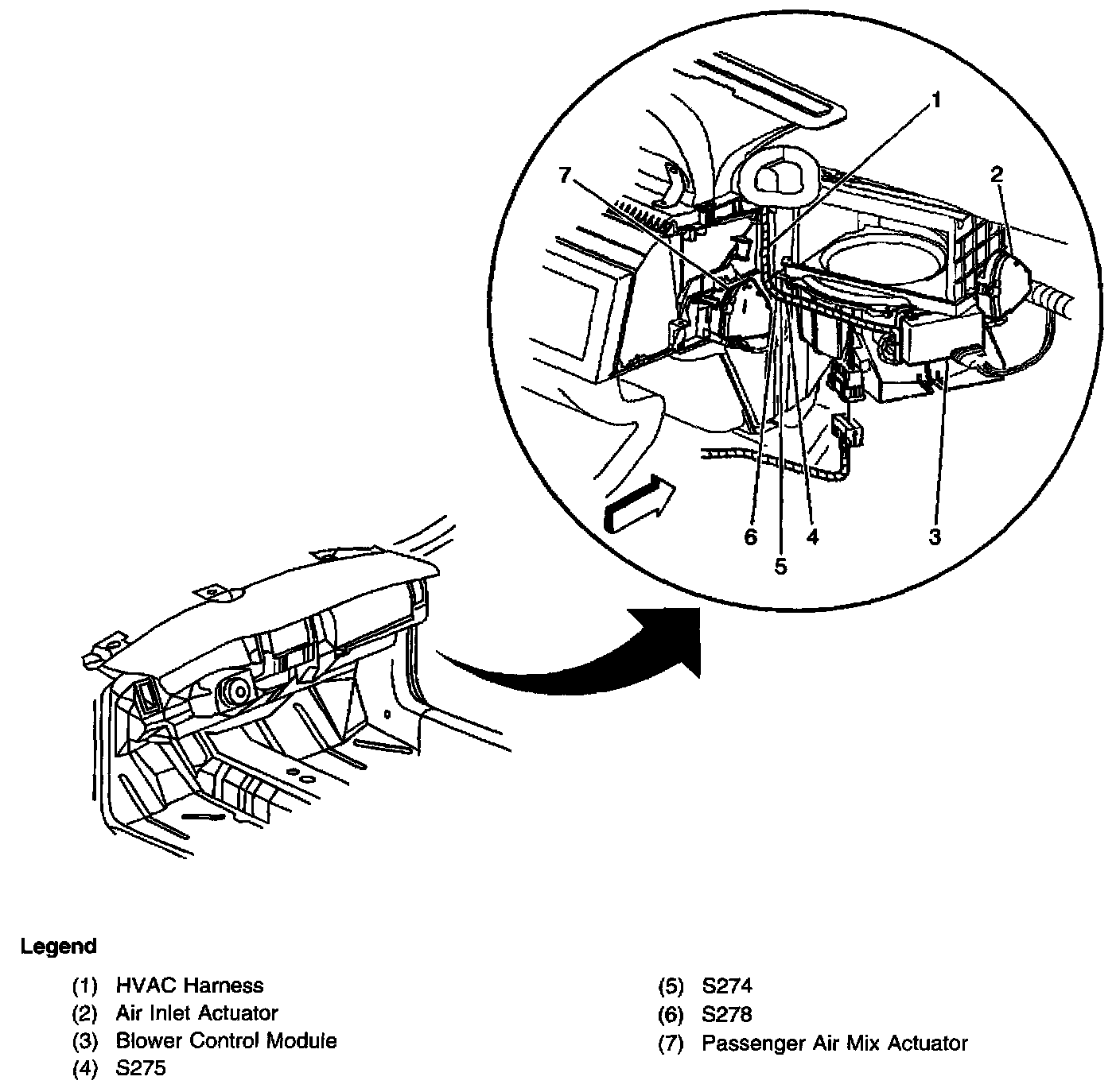HVAC Harness - Passenger Compartment, Behind The Right Side Of The IP: