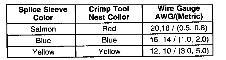 5. Select the proper splice sleeve (2) and the required crimp nest tool, refer to the Crimp and Seal Splice Table.