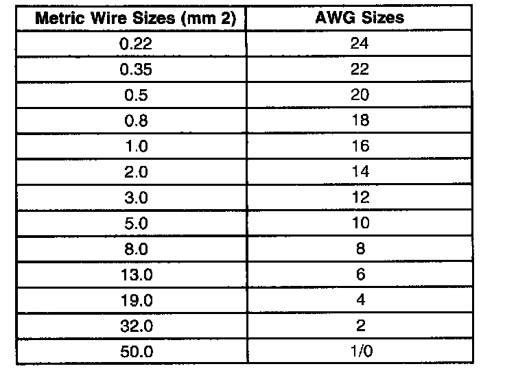 Wire Size Conversion Table: