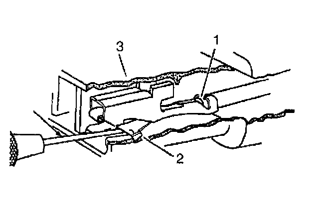 4. Grasp the wire at the back of the connector body and gently pull the terminal (1) from the connector body (3).
