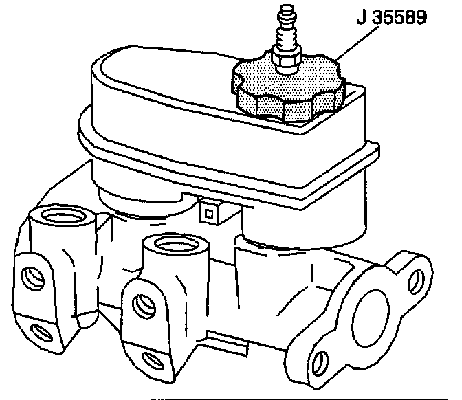 5. Install the J 35589 to the brake fluid reservoir.