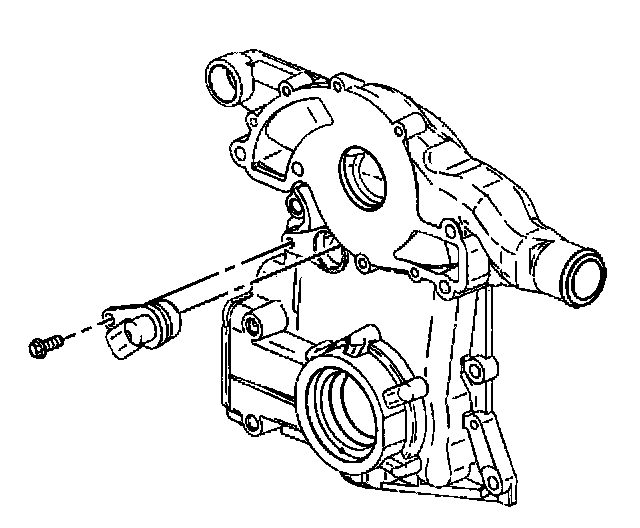 3. If replacing the engine front cover, install the oil filter adapter and pressure relief valve to the engine front cover. Refer to Oil Filter Adapter and Valve Assembly Replacement.