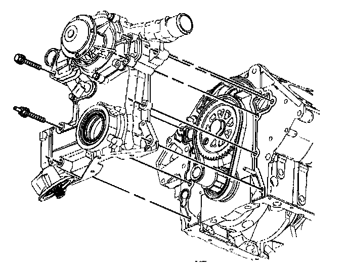 18. If replacing the engine front cover, remove the water pump from the engine front cover. Refer to Water Pump Replacement in Cooling System.