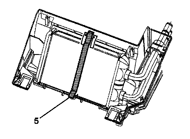 11. Remove and discard the heater core outer seal (5) from the heater core.