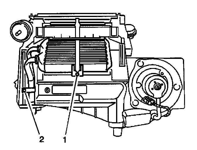 2. Install the heater core upper seal (2) from the HVAC lower case.