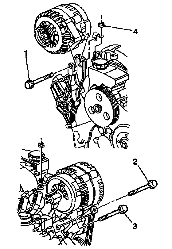 3. Tighten the generator bracket bolts to 50 N.m (37 lb ft).