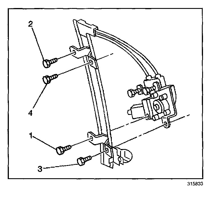 IMPORTANT: In order to ensure proper orientation of the window regulator to the door, tighten the window regulator bolts in the specified sequence (1,2,3,4).