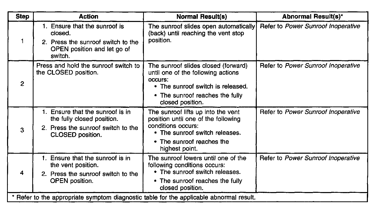 System Check - Power Sunroof