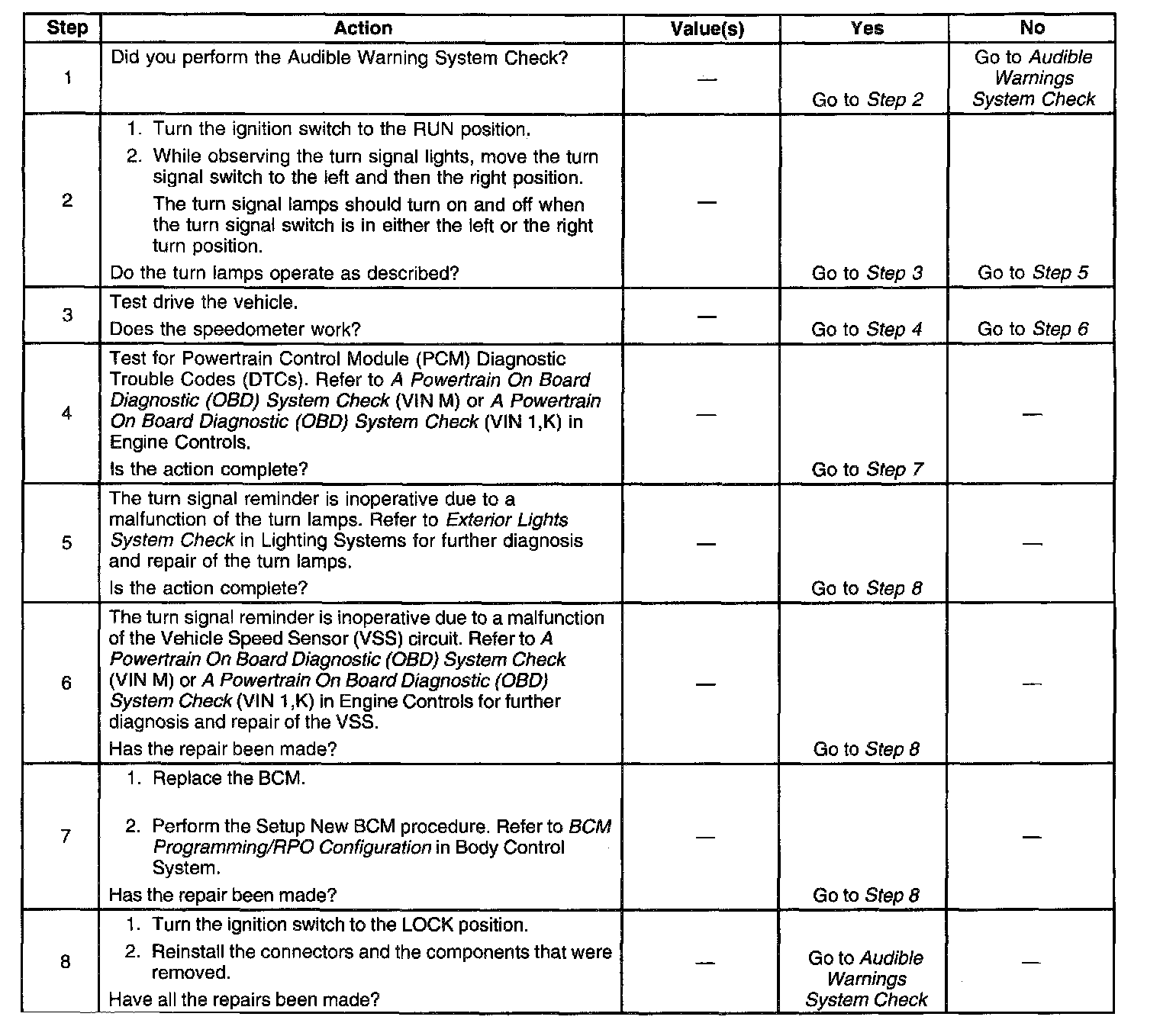 Turn Signal Chime Inoperative