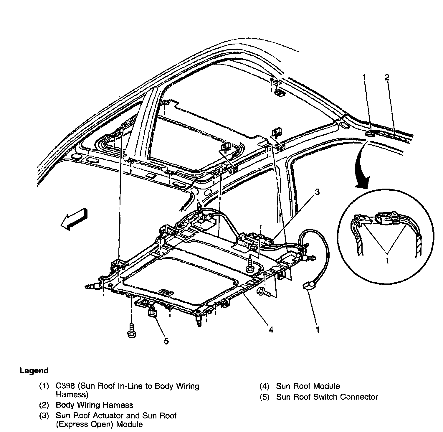 C398 (Sun Roof In-Line to Body Wiring Harness)