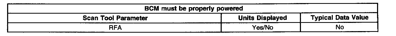 The scan tool displays Yes/No. The Output of the RFA is displayed as No.