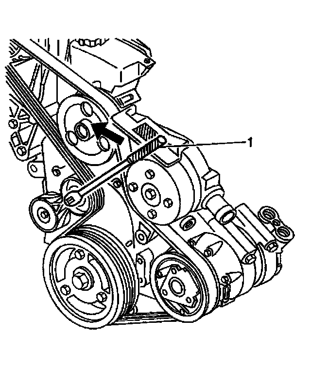 3. Install the drive belt under the drive belt tensioner pulley by lifting or rotating the drive belt tensioner, using a 3/8-inch breaker bar (1).