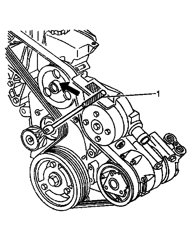 2. Remove the drive belt tension by lifting or rotating the drive belt tensioner off of the drive belt, using a 3/8-inch breaker bar (1).