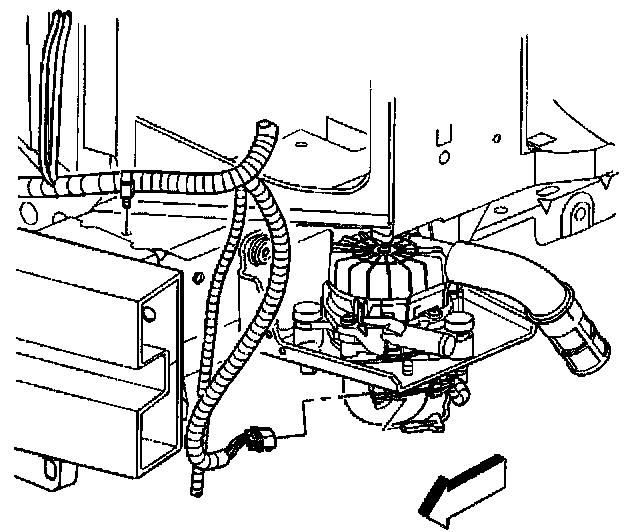 5. Place the AIR exhaust hose pinch clamp around the AIR pump outlet port and exhaust hose connection.
