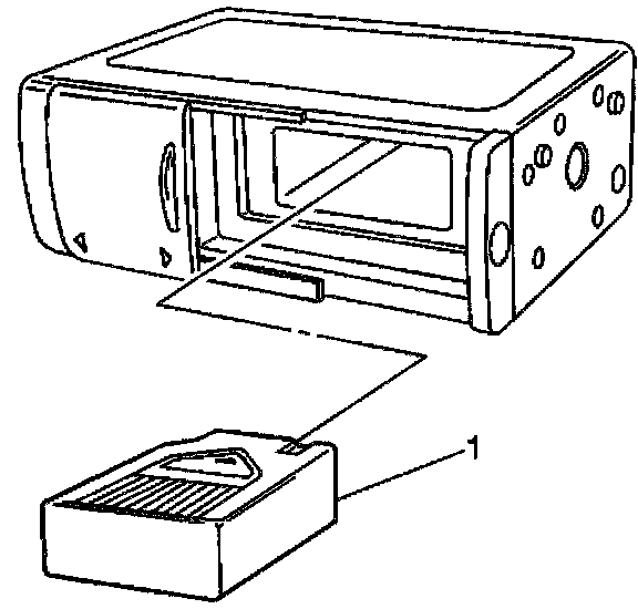 The CD Changer cartridge (1) must be fully inserted and the CD changer door fully closed for the CD changer to load the first disc. The CD changer will shuffle through the cartridge trays in order to determine which trays contain discs. The CHNGR display will flash during this period.