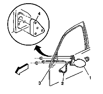 4. Disconnect the power mirror wire harness electrical connector (2).