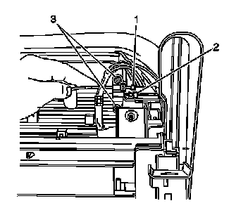 5. Install the fasteners (3) in order to secure the lumbar support cable to the seat cushion frame.