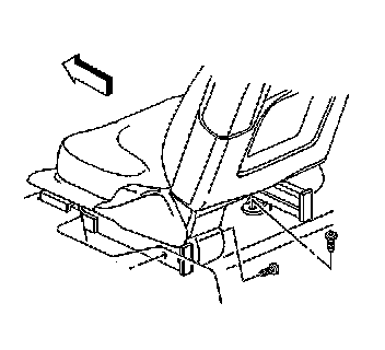 6. Remove the rearward front seat fasteners.