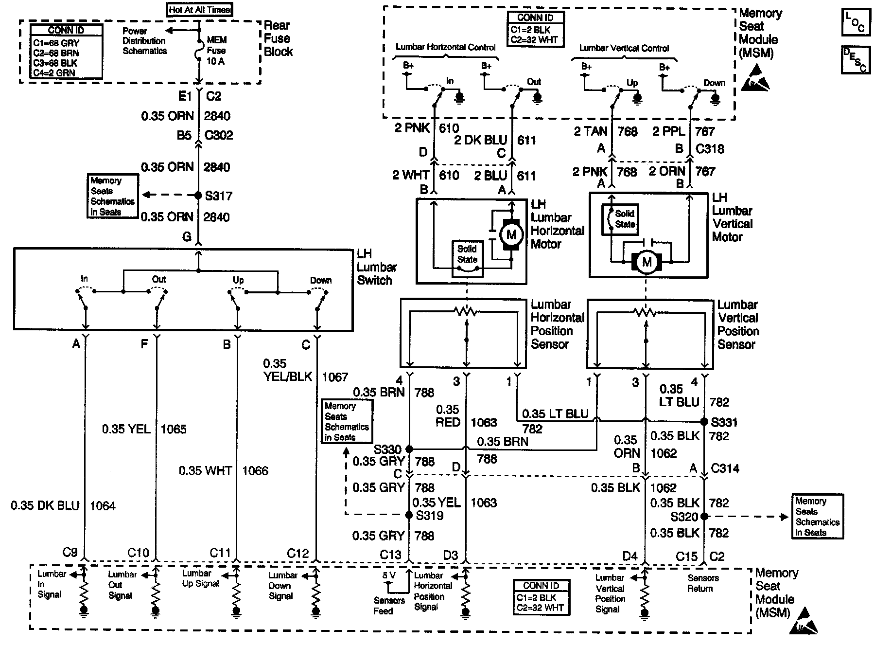 Lumbar Support Schematics: Lumbar (w/Memory):