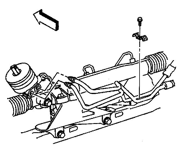 7. Remove the power steering line retainer at power steering gear.