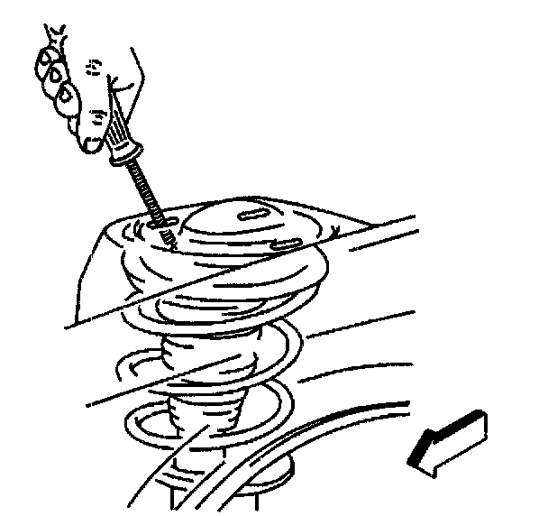 8. Move the top of the strut forward or rearward in order to adjust the caster. A 1 mm (0.040 inch) position change at the tower is about equal to a 0.1 degree change in the caster.