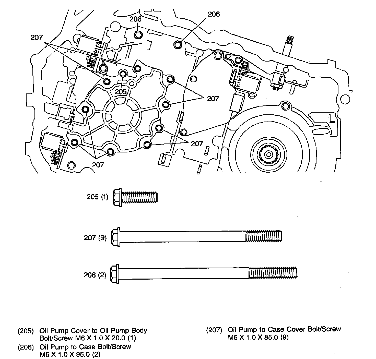 Bottom Pan, Accumulator Cover and Manual 2-1 Band Servo Cover Bolts