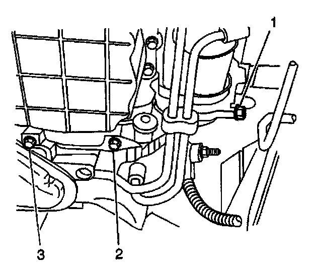 2. Install the torque converter cover and bolts (1, 2, 3). Refer to Torque Converter Cover Replacement.