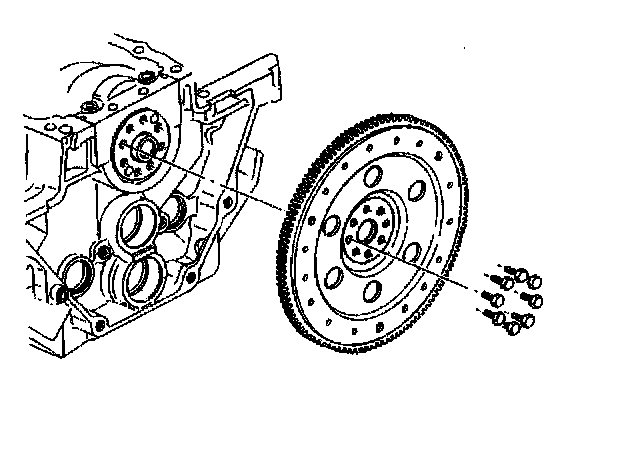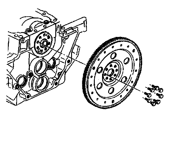 3. Remove the eight bolts attaching the flywheel to the crankshaft flange. Discard the bolts.