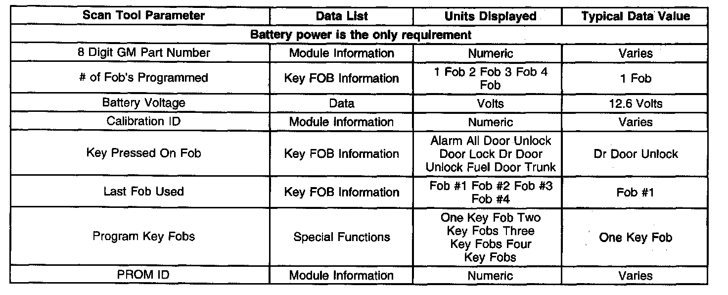 Scan Tool Data List: