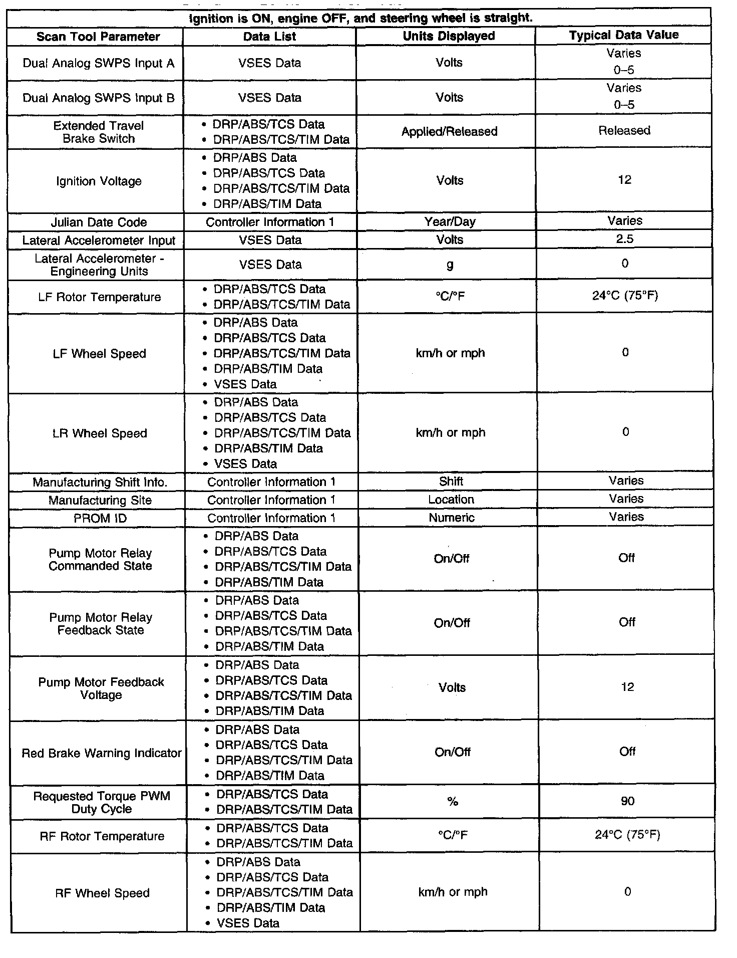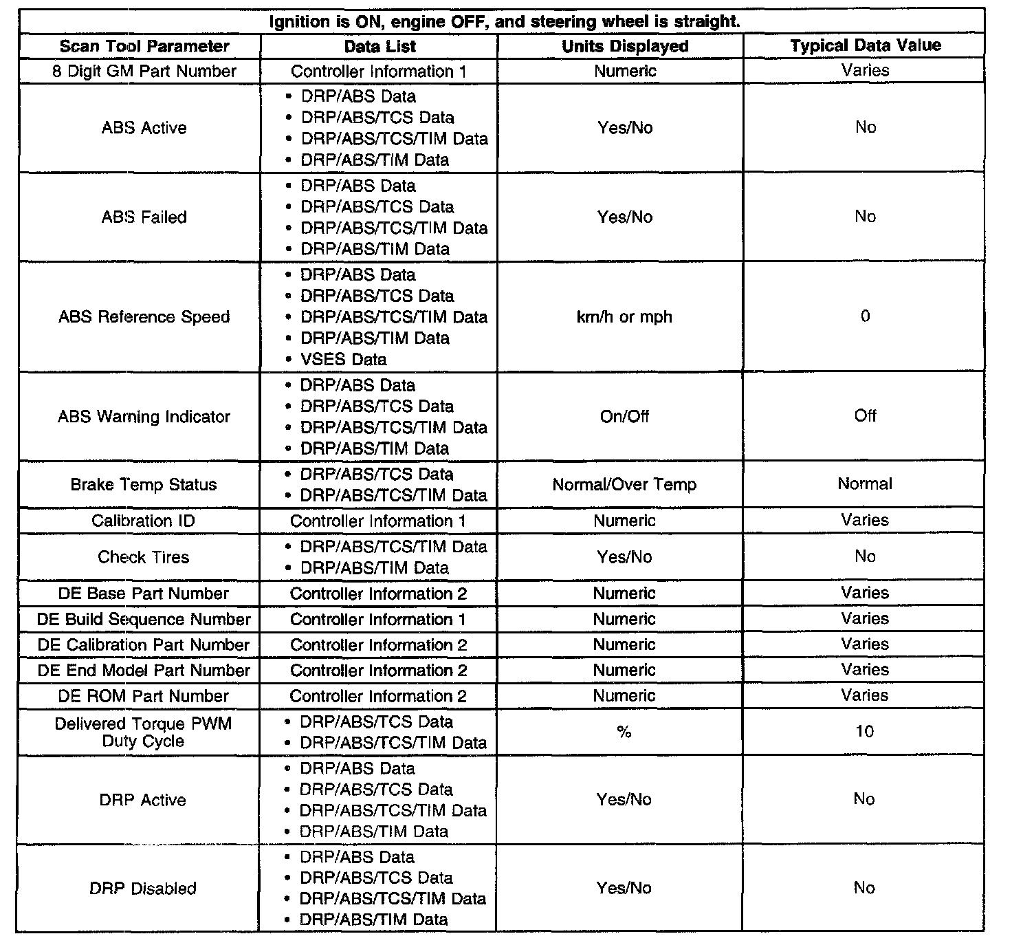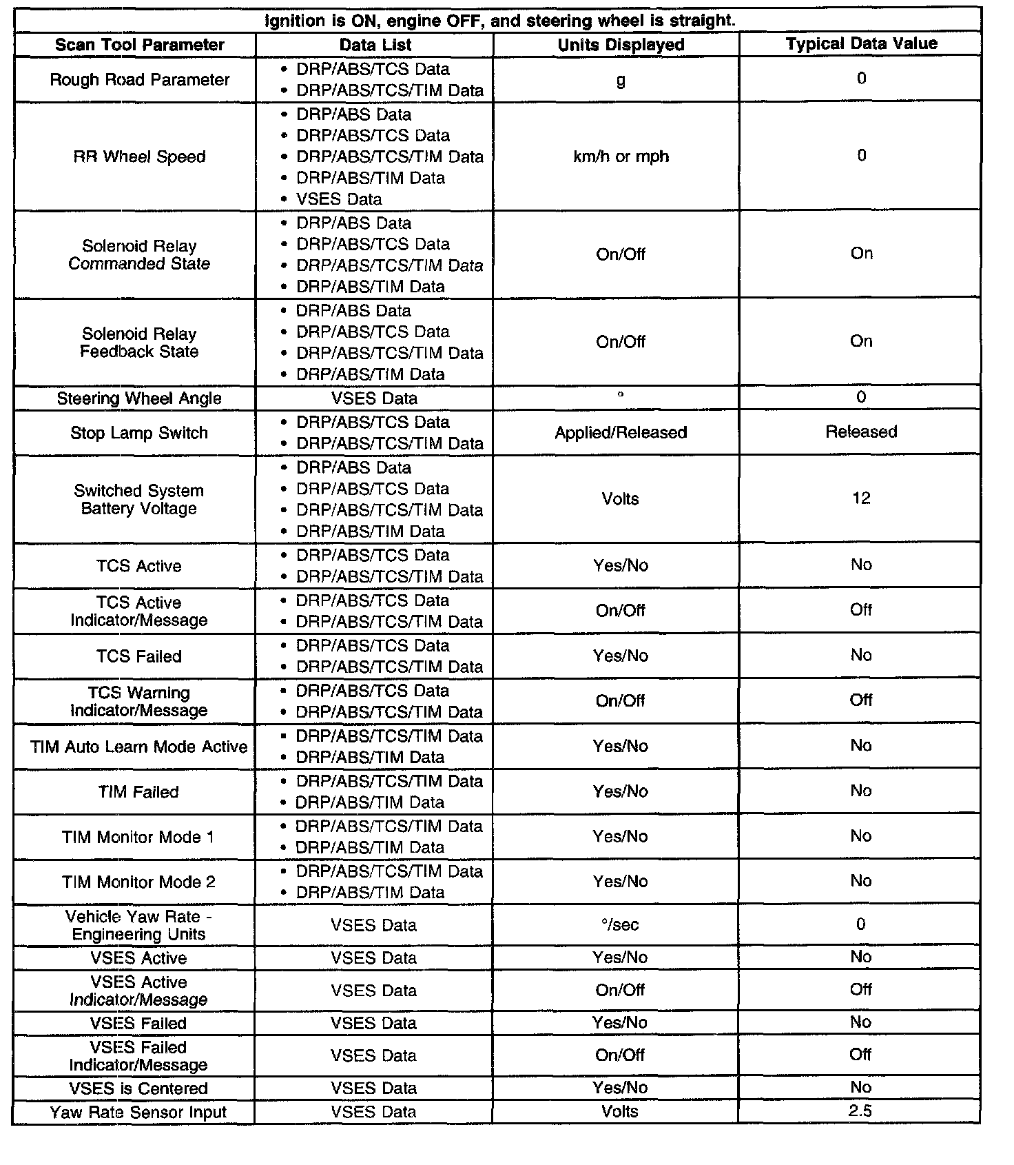 Scan Tool Data List