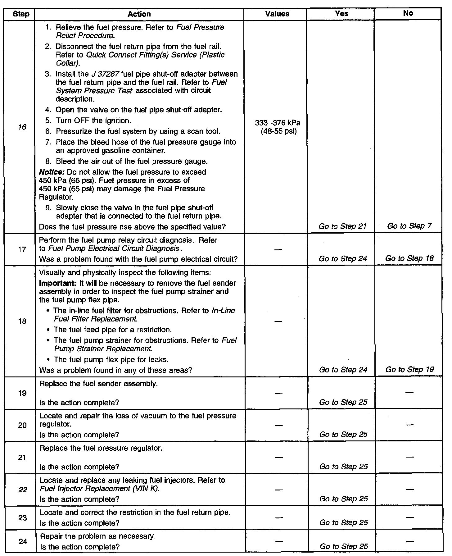 13. This test determines if the high fuel pressure is due to a restricted fuel return pipe or if the high fuel pressure is due to a faulty fuel pressure regulator.