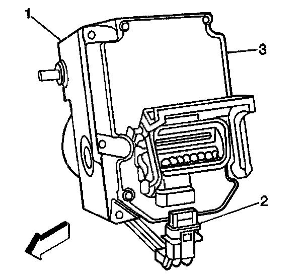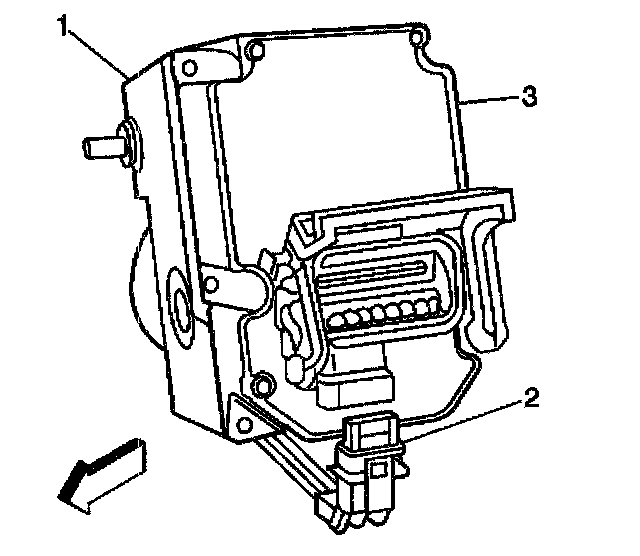 8. Remove the BPMV electrical connector (2) from the EBCM (3).